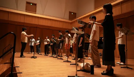 団体としてのサウンドの方向性を定めたレッスンで、高いクオリティへのレベルアップを図ります。